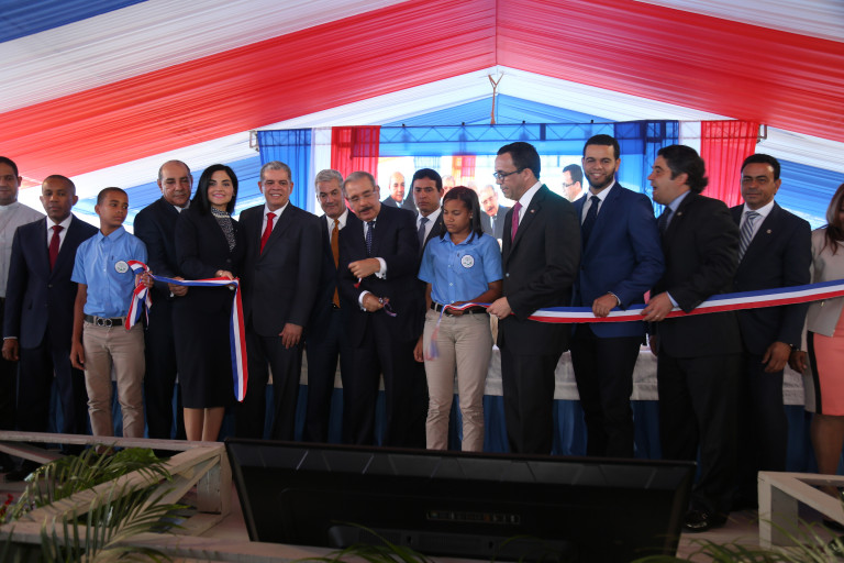 Acto de apertura de forma simultánea de tres nuevas escuelas y una estancia infantil en la provincia Espaillat, entregadas hoy por el presidente Danilo Medina.
