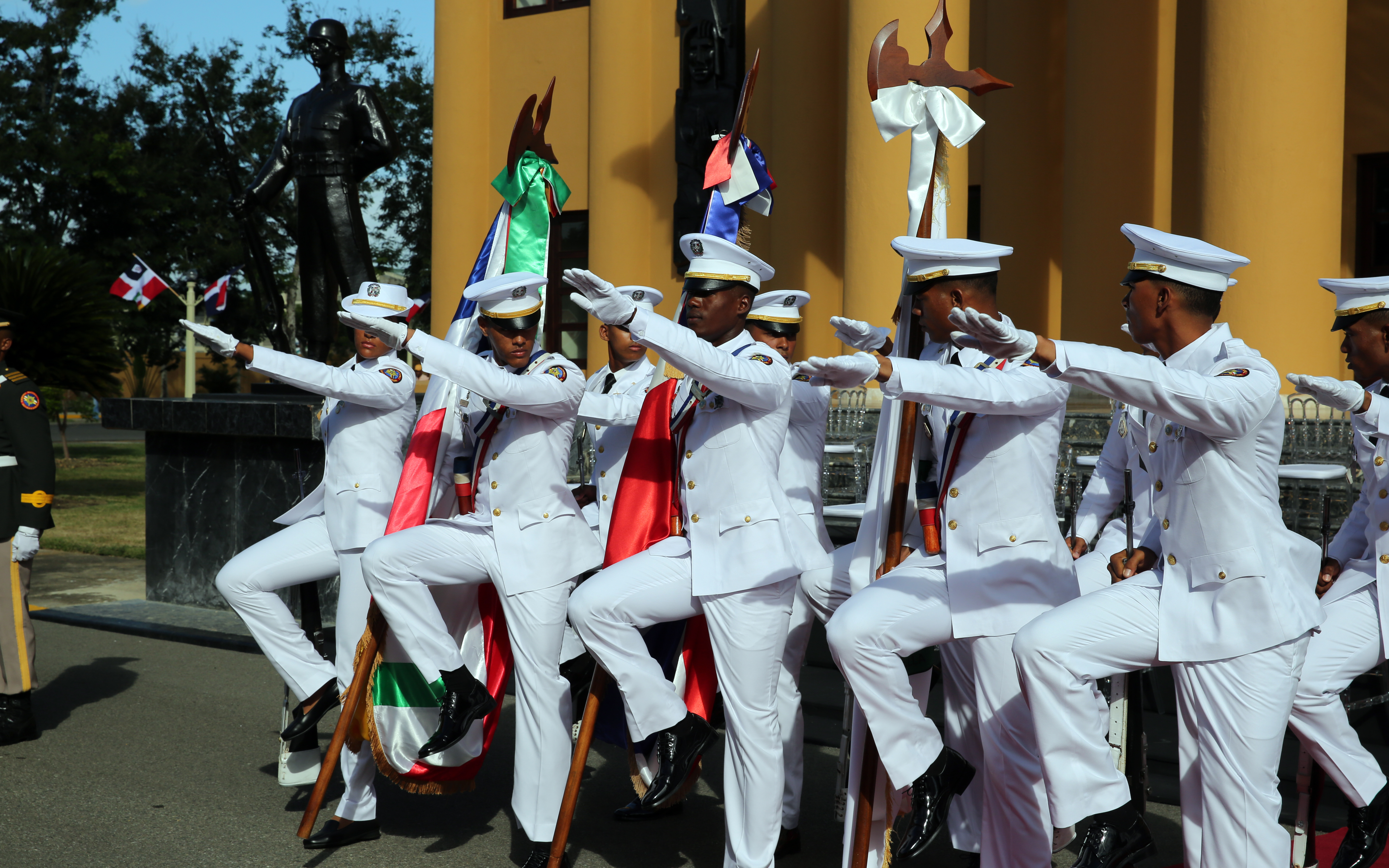 Marcha de cadetes durante el acto de investidura de los nuevos oficiales pertenecientes a la quincuagésima segunda promoción “General de División Pedro Florentino”, en la sede de la Academia Militar Batalla de Las Carreras.
