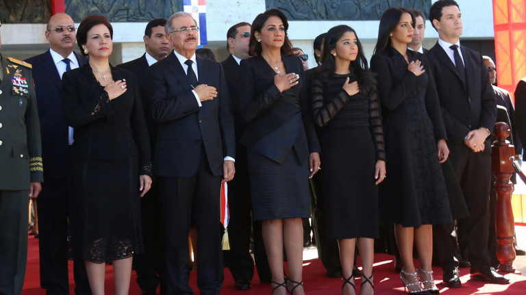 Ministro de Defensa, teniente general Rubén Darío Paulino Sem (ERD), vicepresidenta de la República, Dra. Margarita Cedeño de Fernández; presidente de la República Dominicana, Danilo Medina, su esposa Cándida Montilla de Medina; Candy Sibeli Medina de Duarte, Vanessa Medina de González, y esposo Martín González.