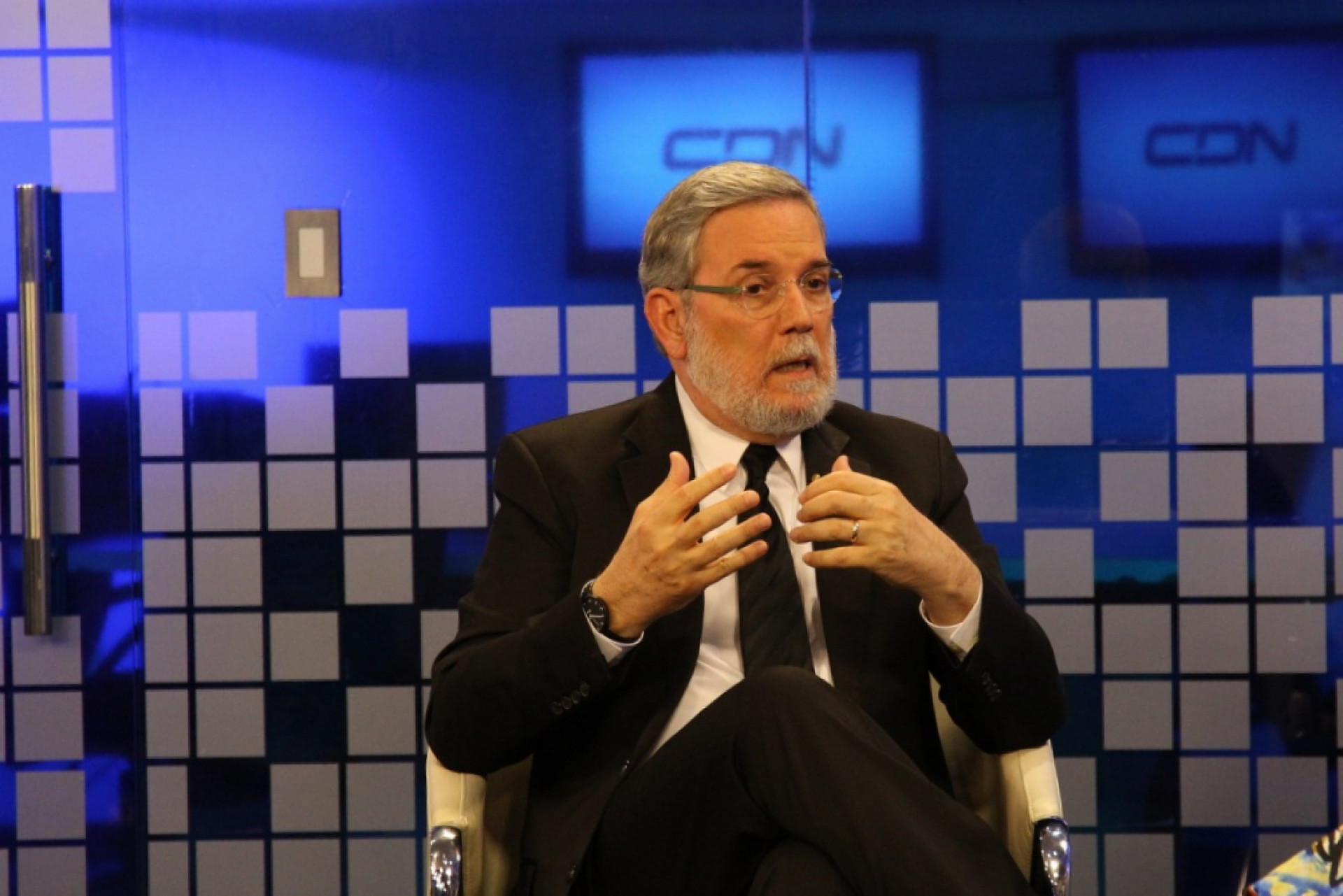 Roberto Rodríguez Marchena, portavoz del Gobierno, durante entrevista de la periodista Edith Febles, conductora del programa especial de CDN con motivo del discurso del presidente Danilo Medina, en el 174 aniversario de la Independencia Nacional.
