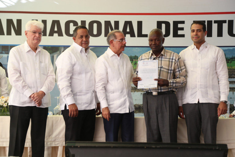 Acto de entrega de títulos de propiedad definitivos de parcelas y viviendas, a productores de Baní, provincia Peravia, encabezado por el presidente Danilo Medina, cumpliendo así su promesa hecha en la Visita sorpresa 184. Foto: Ángel Álvarez/Presidencia República Dominicana Enlace noticia: presidencia.gob.do/noticias/en-cumplimiento-vs-184-parcel...