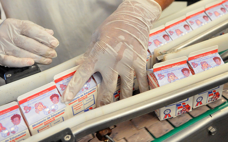 A través del Programa de Alimentación Escolar se da participación a pequeños productores locales, una acción que fomenta el bienestar en esas comunidades y que ayuda a mantener el campo productivo porque los productos tienen una salida asegurada. En la imagen, vemos leche pasteurizada lista para ser distribuida en la planta procesadora de AGAMPTA.