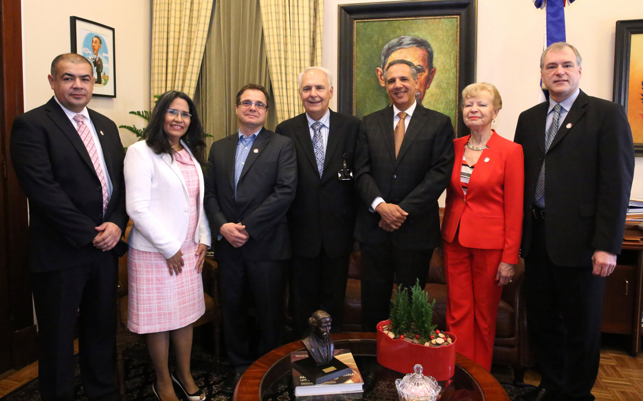 La delegación de empresarios canadienses que visitó al ministro administrativo de la Presidencia, José Ramón Peralta, estuvo presidida por el Asesor de Negocios del Poder Ejecutivo, Gerard Trudeau y el director de Operaciones de la Federación de Empresarios de la Agricultura, Fernando Borja. También estuvo presente la ministra de Trabajo, Maritza Hernández.