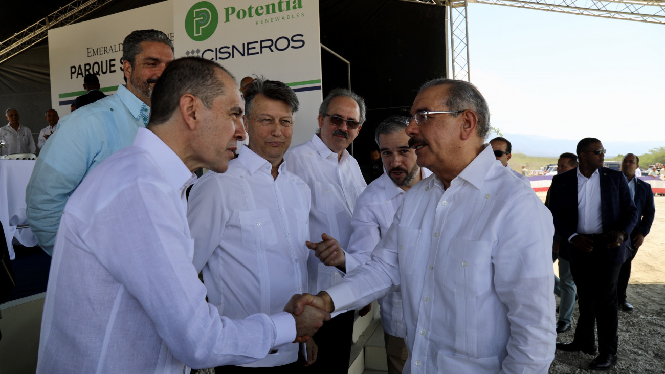 El presidente Danilo Medina y ejecutivos de la empresa, durante la recepción inaugural por el inicio del Parque Solar Canoa, que abastecerá de luz a 10 mil hogares. Foto: Luis Ruiz Tito/Presidencia República Dominican Enlace noticia: presidencia.gob.do/noticias/parque-solar-canoa-abastecera...