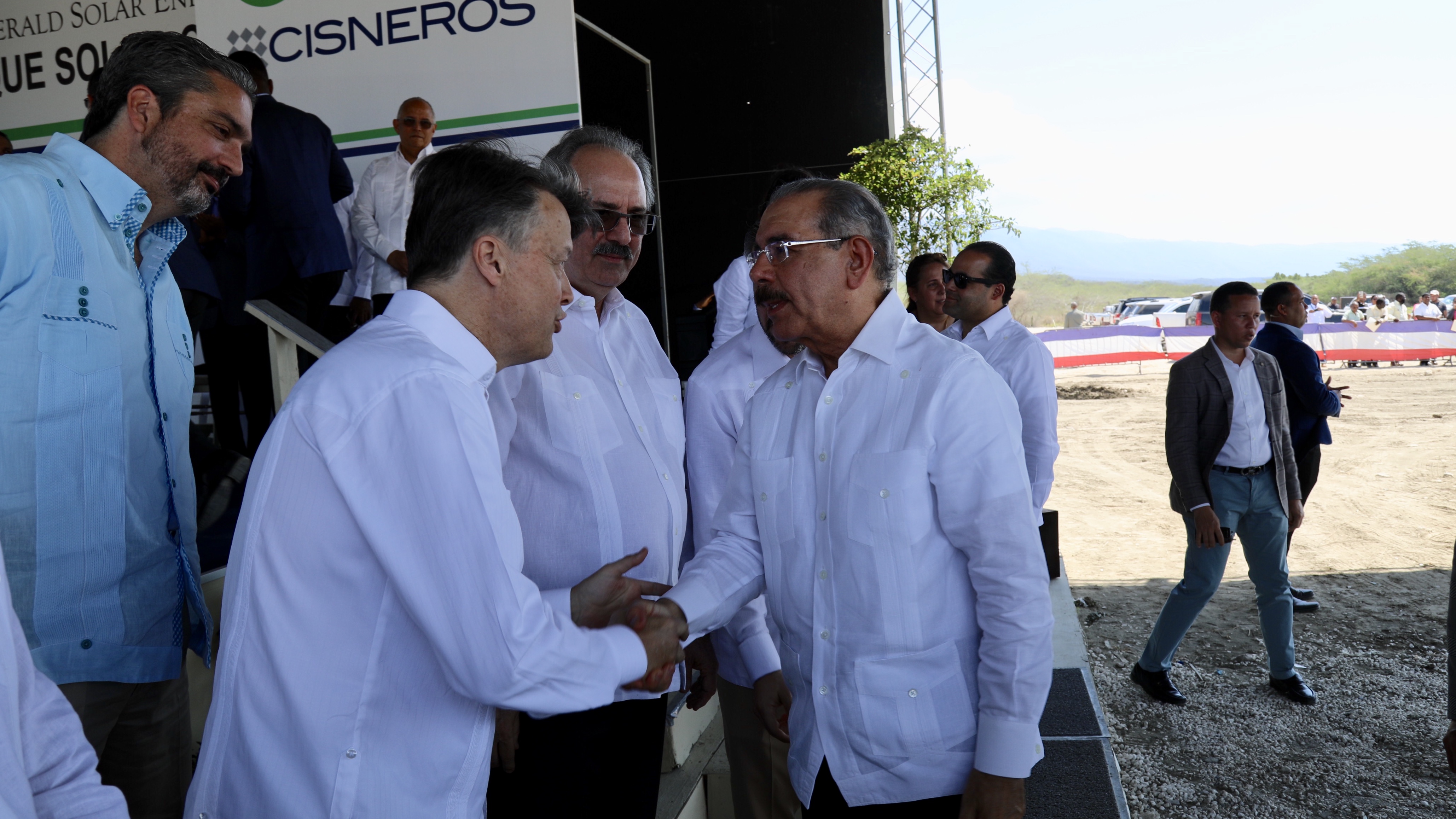 El presidente Danilo Medina y ejecutivos de la empresa, durante la recepción inaugural por el inicio del Parque Solar Canoa, que abastecerá de luz a 10 mil hogares.