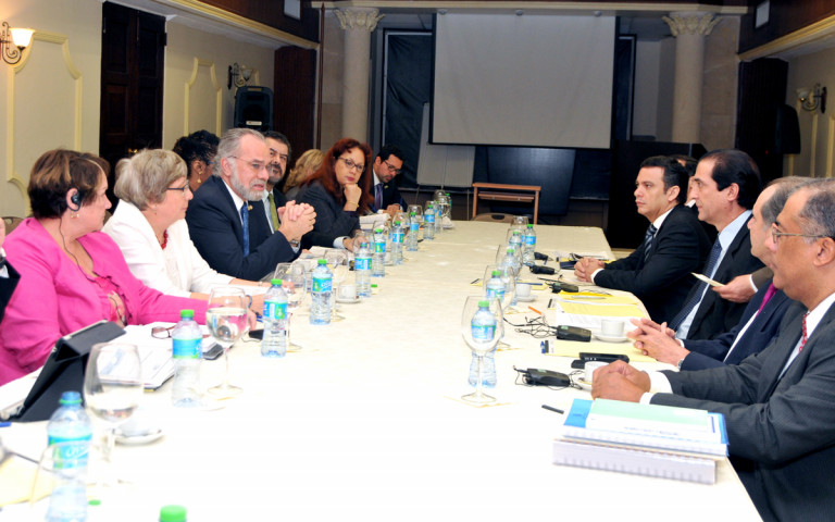 Vista de la reunión sostenida en el Palacio Nacional encabezada por el ministro Gustavo Montalvo en representación del Gobierno dominicano y delegados de la Comisión Interamericana de los Derechos Humanos (CIDH), para conocer los alcances de la Sentencia 168-13 del Tribunal Constitucional y el Plan Nacional de Regularización de Extranjeros que viven de manera irregular en la República Dominicana.