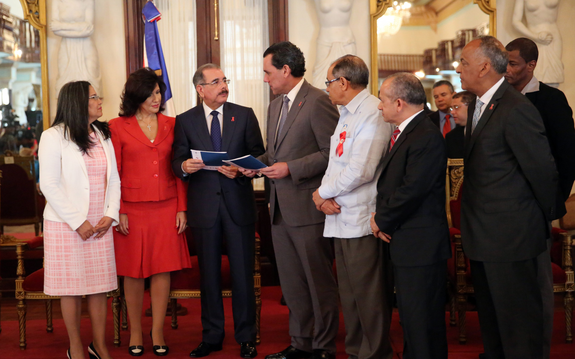 Presidente recibe documento "Política sobre VIH y SIDA en el Lugar de Trabajo para el Sector Zona Franca de la RD", de parte de representantes del sector Zona Franca.
