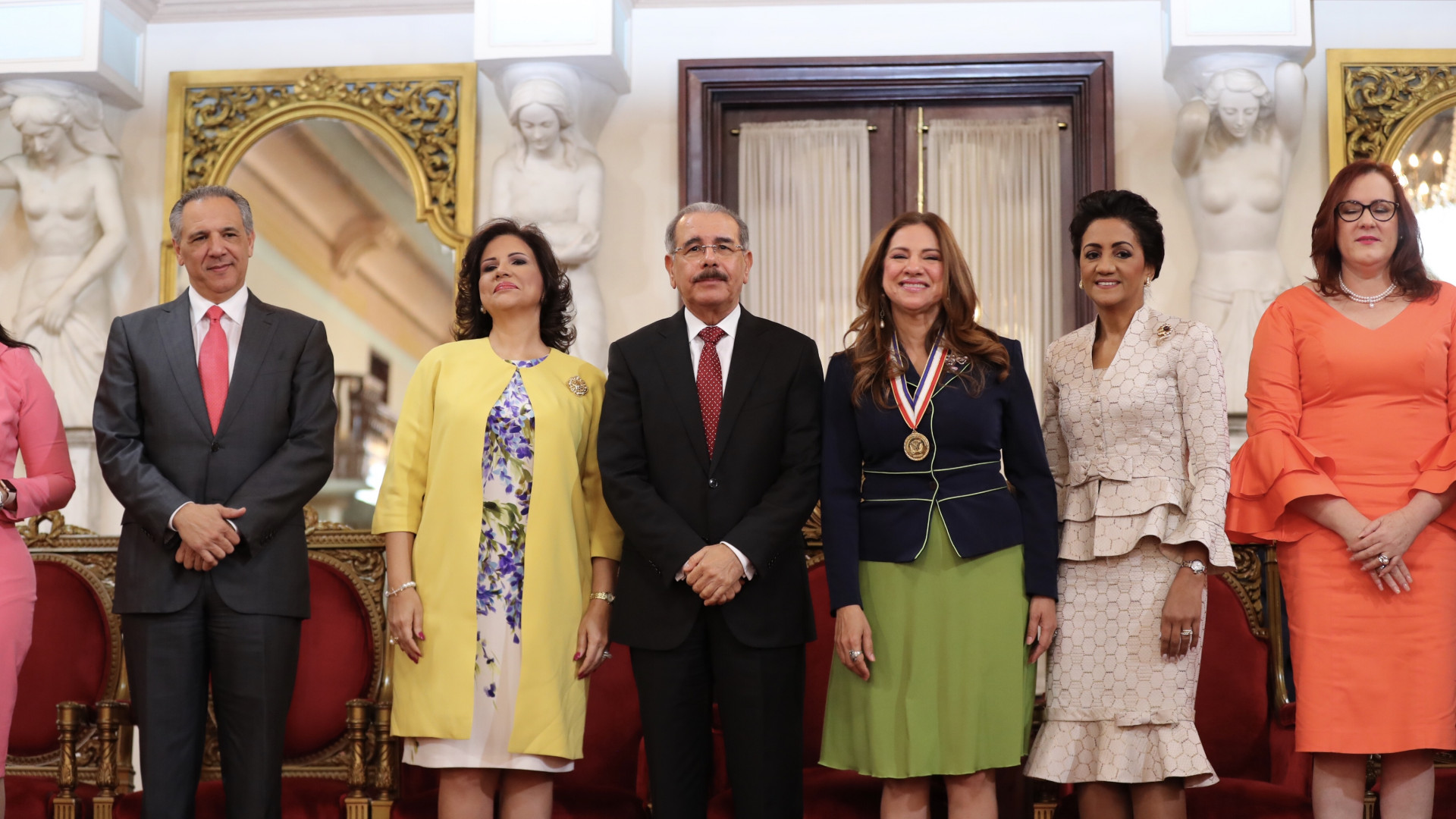 El presidente Danilo Medina impuso la Medalla al Mérito de la Mujer a 13 dominicanas destacadas en diversos sectores de la sociedad, por el Día Internacional de la Mujer en un acto celebrado hoy en el Salón Las Cariátides del Palacio Nacional.