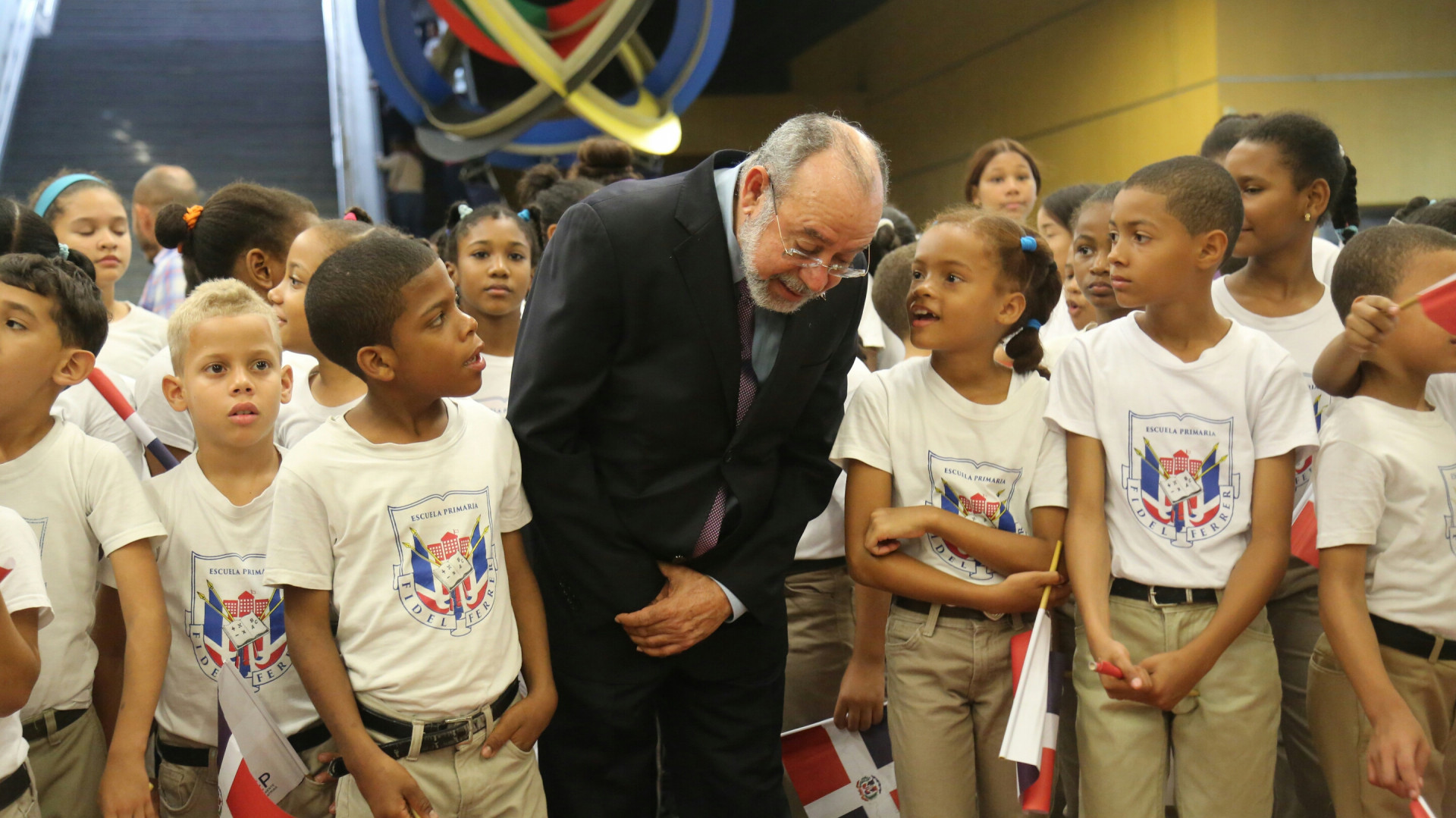 Manuel Antonio Saleta García, director de la OPRET, presidió acto que culminó el Mes de la Patria y promueve la “Cultura Metro”, con estudiantes del centro educativo Fidel Ferrer, realizado hoy en la estación de metro Juan Pablo Duarte.
