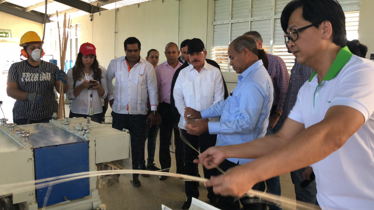 Recorrido del presidente Danilo Medina por las instalaciones de la fábrica ProBambú, ubicada en la comunidad San Isidro, en Juma, Bonao.