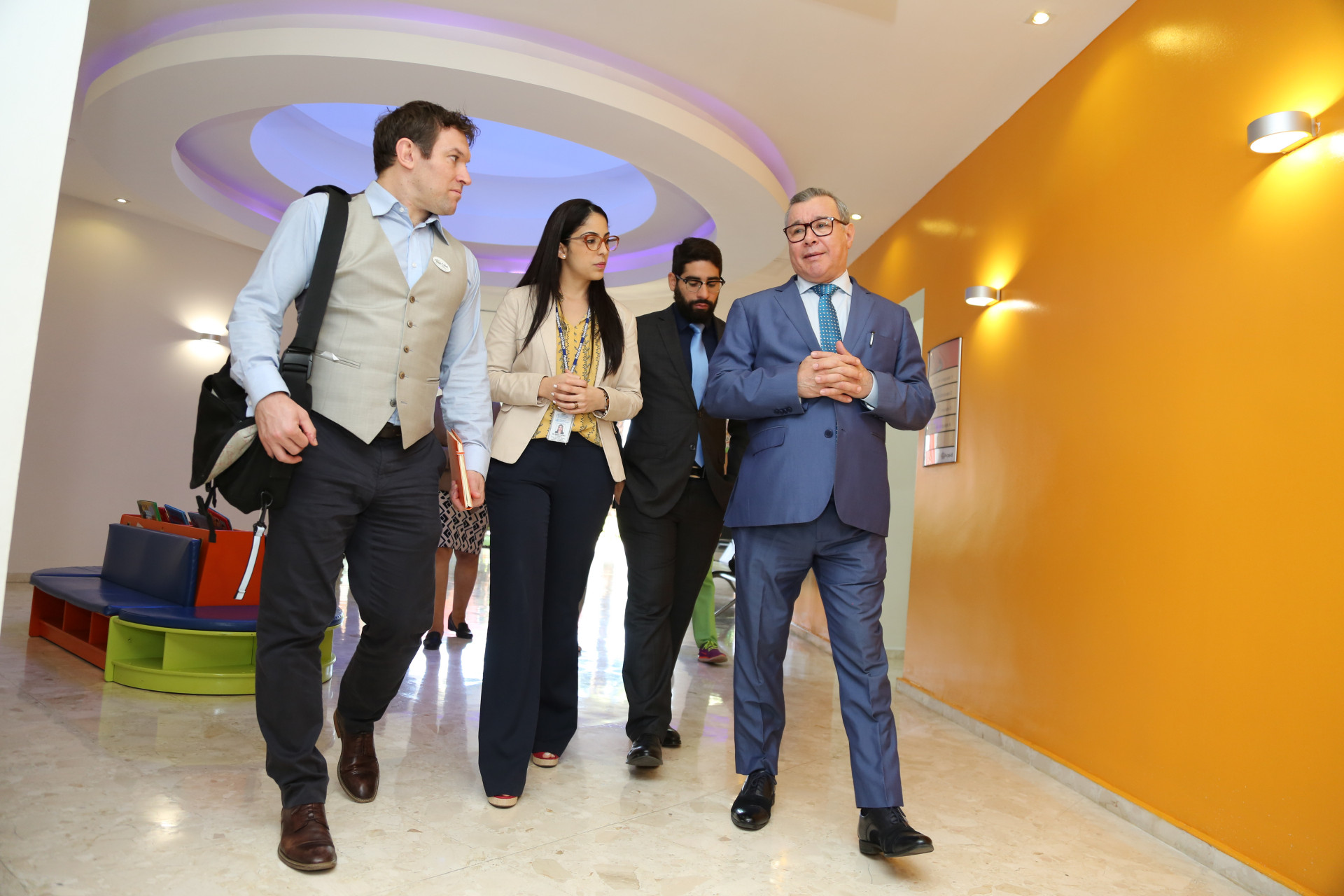 Dr. Moisés Tavera, Antony Duttine junto a los doctores Manuel Medina y Alexandra Rodríguez, consultores nacionales en materia de discapacidad para la OPS/OMS, durante recorrido por el CAID.