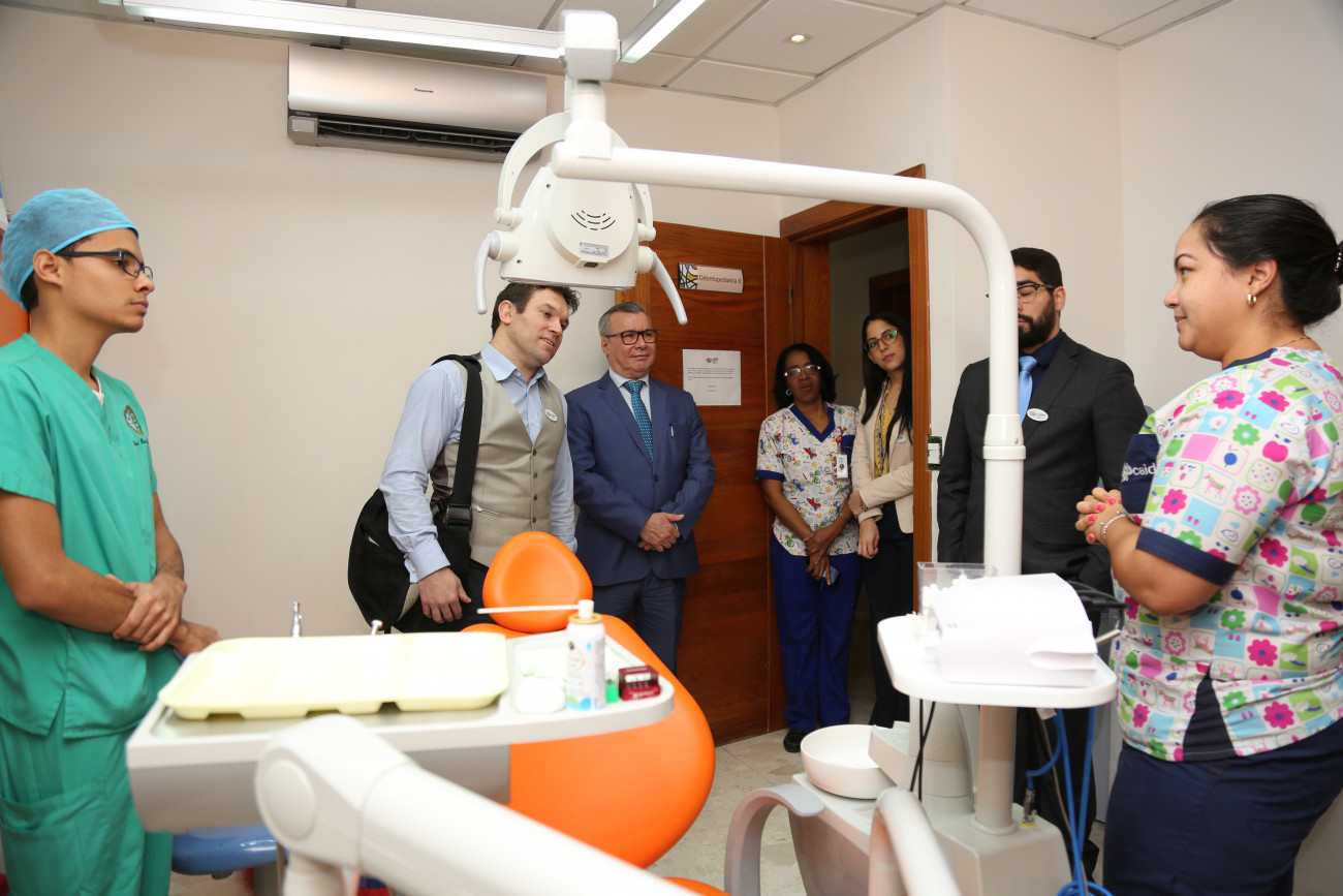 El Dr. Moisés Tavera, director general del CAID- Santo Domingo Oeste, recibió hoy la visita de Antony Duttine, asesor regional en materia de discapacidad de la Organización Panamericana de la Salud (OPS/OMS), en la sede de esa institución.