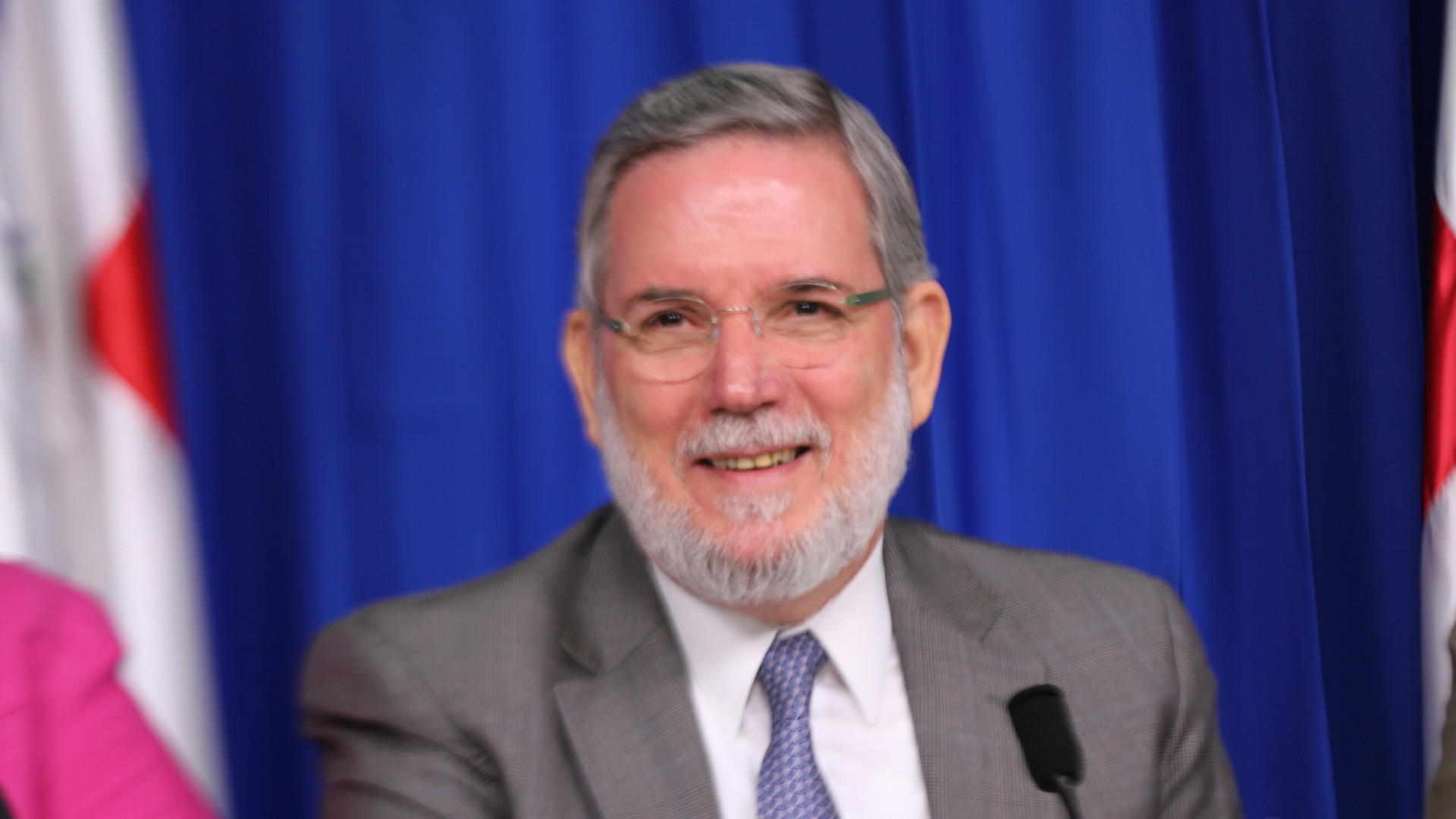 Roberto Rodríguez Marchena, portavos del Gobierno y director general de Dicom, quien es el conductor del encuentro celebrado hoy en el salón Orlando Martínez del Palacio Nacional.