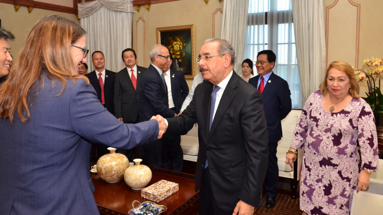 El presidente Danilo Medina recibió los empresarios asiáticos interesados en desarrollar en República Dominicana proyectos textiles orientados a la fabricación de tela de alta calidad. Foto: Presidencia República Dominicana Enlace noticia: presidencia.gob.do/noticias/danilo-medina-recibe-empresar...