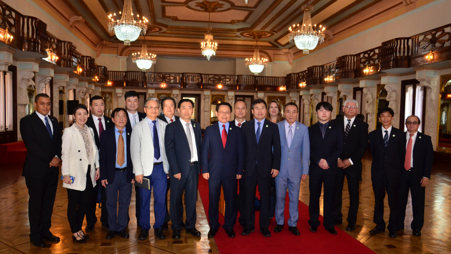 Integrantes de la misión comercial y de inversiones, constituida por empresarios asiáticos de la industria textil, durante su visita al Palacio Nacional.