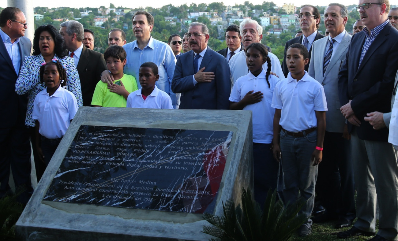 Se hizo el desvelamiento de una tarja del presidente que dice lo siguiente:“En el compromiso de defender y dignificar mi patria y su gente, hoy comenzamos a construir este sueño que parecía imposible, un plan integral de desarrollo urbano y rescate ambiental de la cuenca del Ozama, como modelo de actuación, sobre la VULNERABILIDAD HUMANA, con la responsabilidad de acompañar y formar a estas comunidades en su inserción a un nuevo modelo de vivienda digna, ciudad y territorio”.