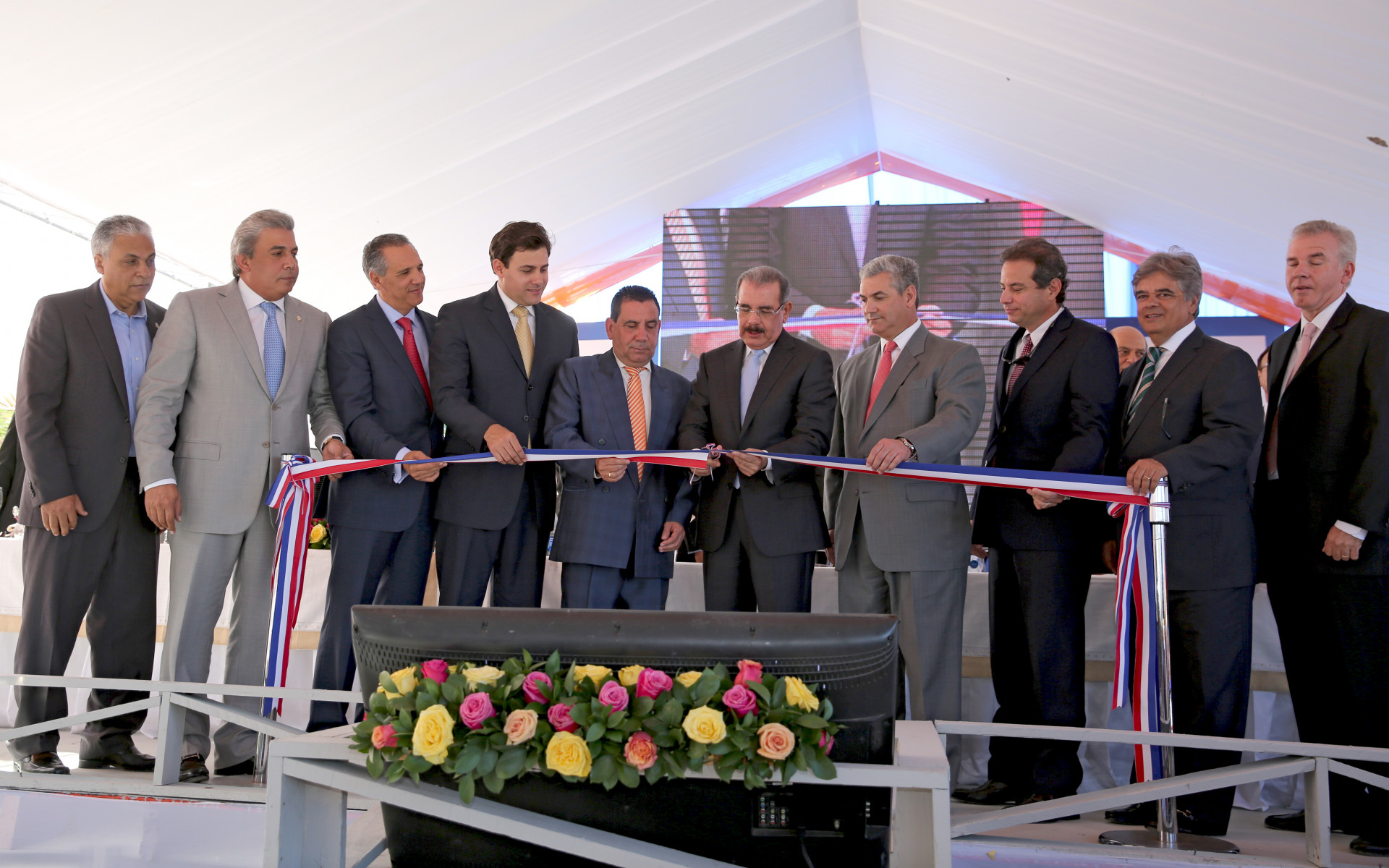El presidente Danilo Medina, junto al ministro de Obras Públicas, Gonzalo Castillo, el ministro administrativo, José Ramón Peralta, y ejecutivos de las constructoras Odebrecht y Rizek, realiza el corte de cinta para dejar inaugurada la carretera Cruce de Ocoa-San José de Ocoa. La obra vial tiene una extensión troncal de 24.6 kilómetros, con dos carriles de circulación de 3.30 metros de ancho.