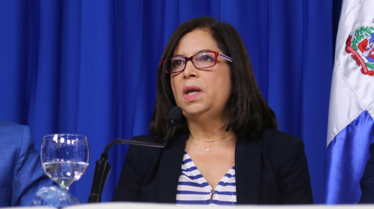 Maira Jiménez Pérez, directora general de Banca Solidaria, en el encuentro celebrado en el Salón Orlando Martínez del Palacio Nacional.