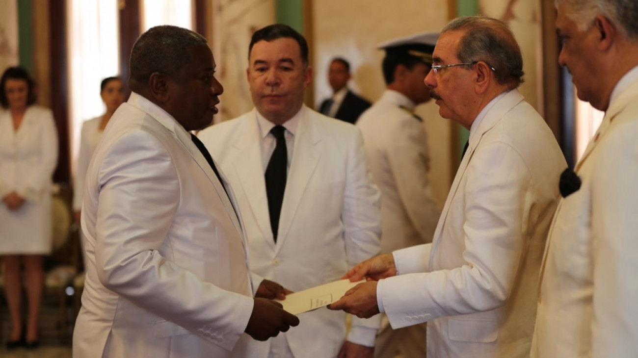 Presidente Danilo Medina recibe las cartas credenciales del señorJerobeam Shaanika, nuevo embajador de Namibia en el país.