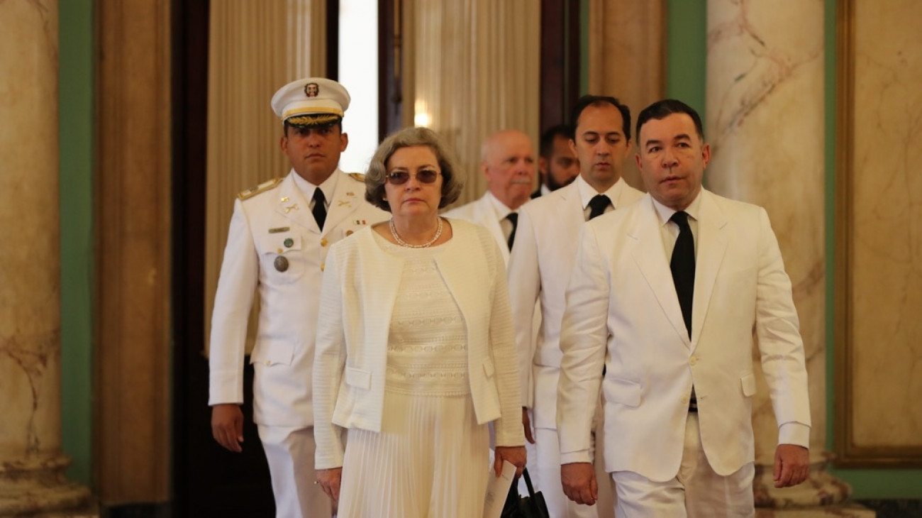Señora Bibs Bettina Rodríguez de Leets, nueva embajadora de Nicaragua en el pais, al momento de llegar al Salón de Embajadores del Palacio Nacional.