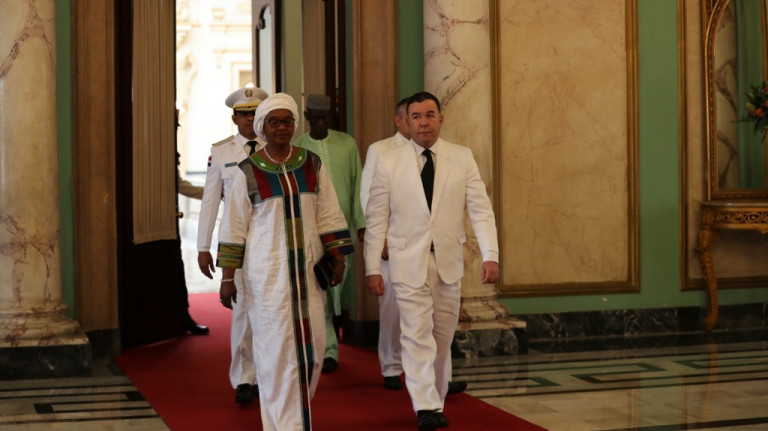 Embajadora de la República de Guinea en el país, señora Hawa Diakite, al momento de ser introducida al Salón de Embajadores del Palacio Nacional.