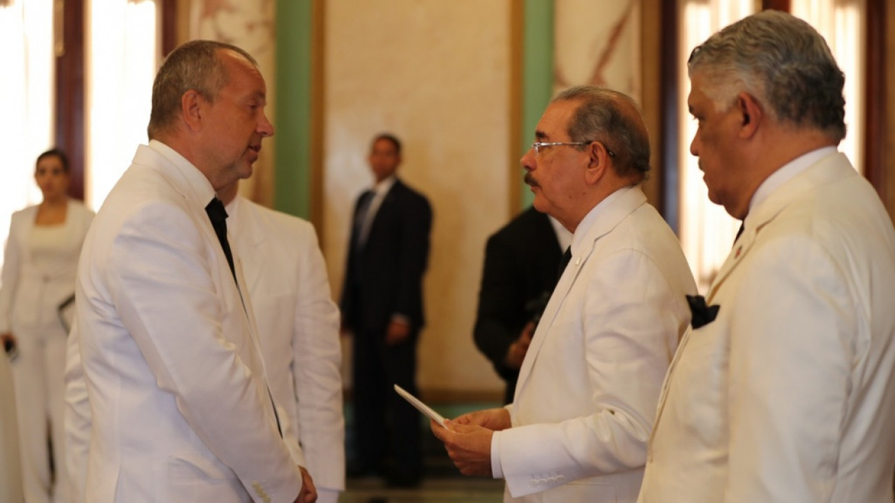 El presidente Danilo Medina recibe las cartas credenciales del nuevo embajador de la República Checa en el país, Vladimir Eisenbruk.