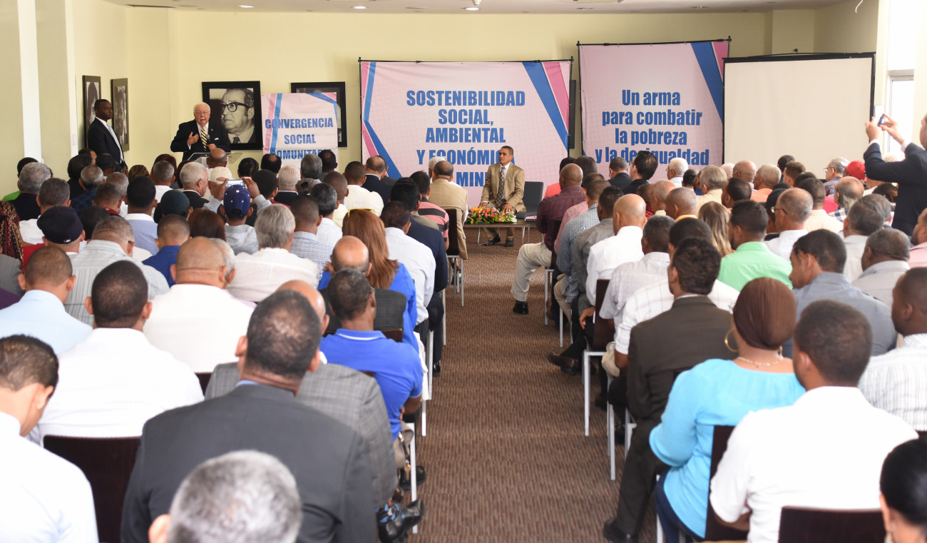 Antonio Isa Conde, ministro de Energía y Minas, con representantes de comunidades mineras de 27 provincias, en acto celebrado en la Biblioteca Nacional Pedro Henríquez Ureña en Santo Domingo.