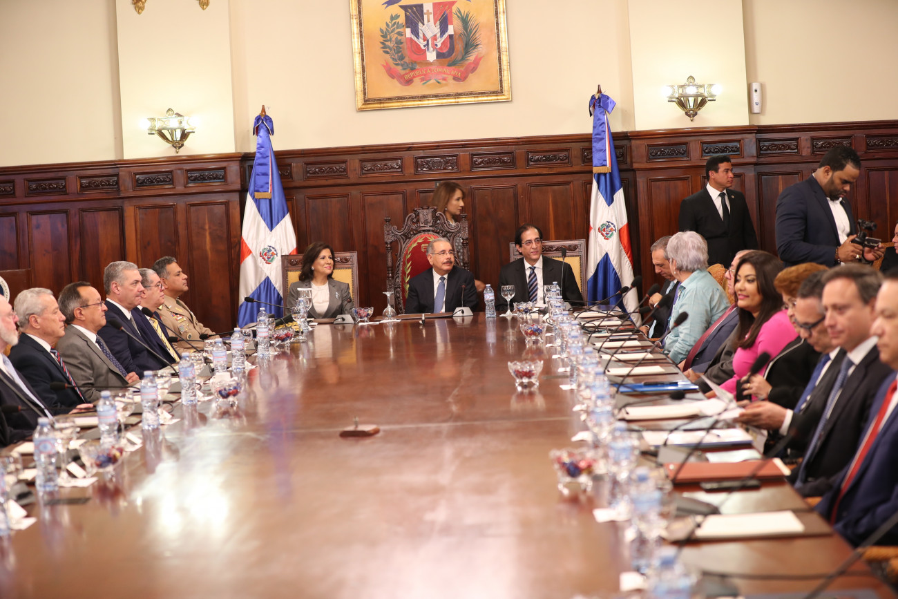 Reunión encabezada por el presidente Danilo Medina y la vicepresidenta Margarita Cedeño de Fernández, con ministros, directores generales y funcionarios del Estado, para conocer los resultados del Sistema de Monitoreo y Medición de la Gestión.
