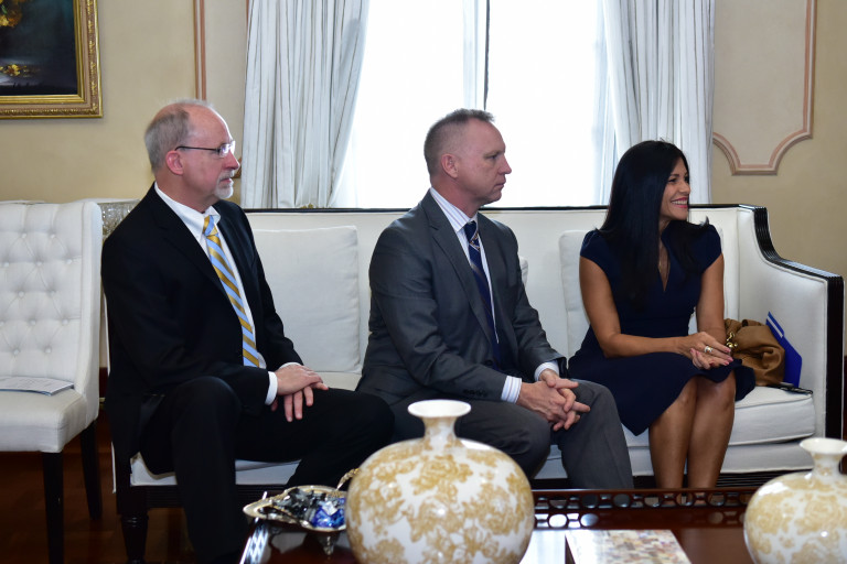 Reunión del presidente Danilo Medina con ejecutivos de la empresa Cosmed Group, encabezados por el CEO, David Howe, y Claudia Pellerano, presidenta de Zona Franca Las Américas (ZFLA).