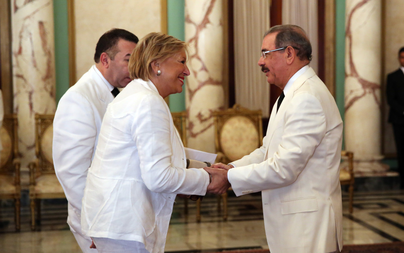El presidente Medina recibe las cartas credenciales de la embajadora de Bélgica en el país, Godelieve Van Den Bergh.