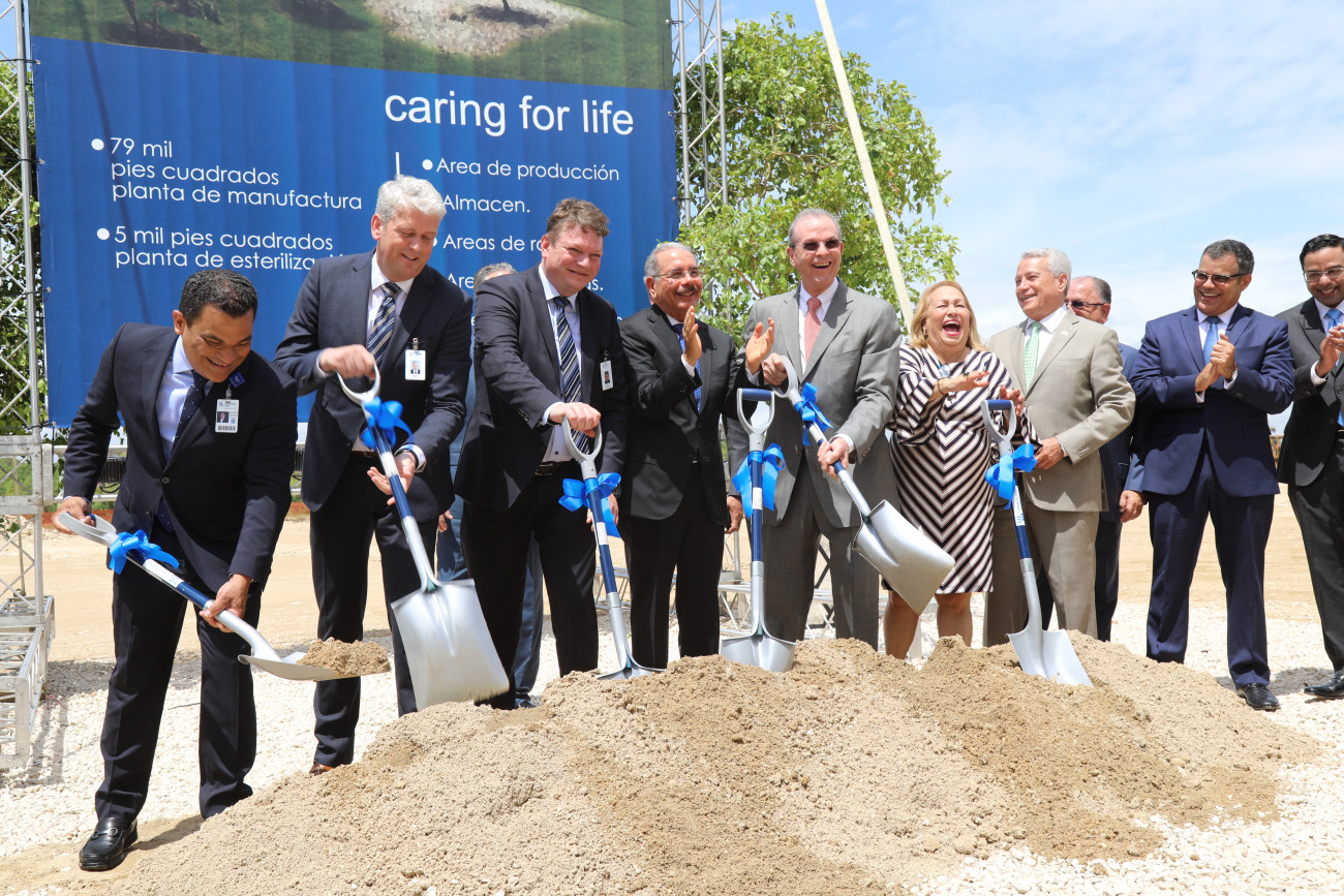 El presidente Danilo Medina dio el primer palazo al inicio de construcción de la tercera planta de manufactura de Fresenius Kabi en la República Dominicana.