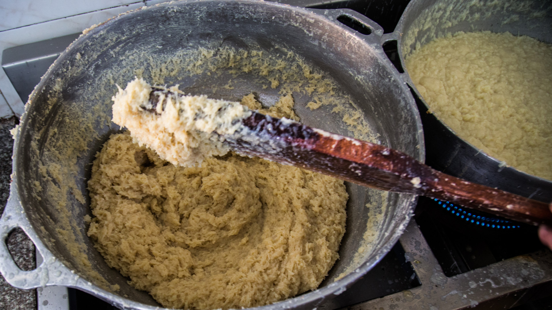Como sabía hacer dulces, en especial el dulce de coco con leche, con un caldero pequeño, en una cocina de madera y fogón de leña se puso a comprarle cocos a vendedores de Samaná y de otras provincias del país, a guayar y a endulzar hasta lograr ese dulcito famoso en Constanza y conocido allí como panela.