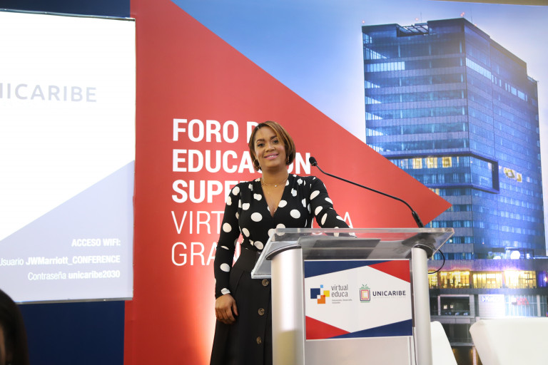 Participantes en la conferencia "República Digital: una apuesta por el futuro y por la calidad de la educación”, en el Foro de Educación Superior Virtual Educa Gran Caribe, que tuvo lugar en el Hotel JW Marriott de Santo Domingo.