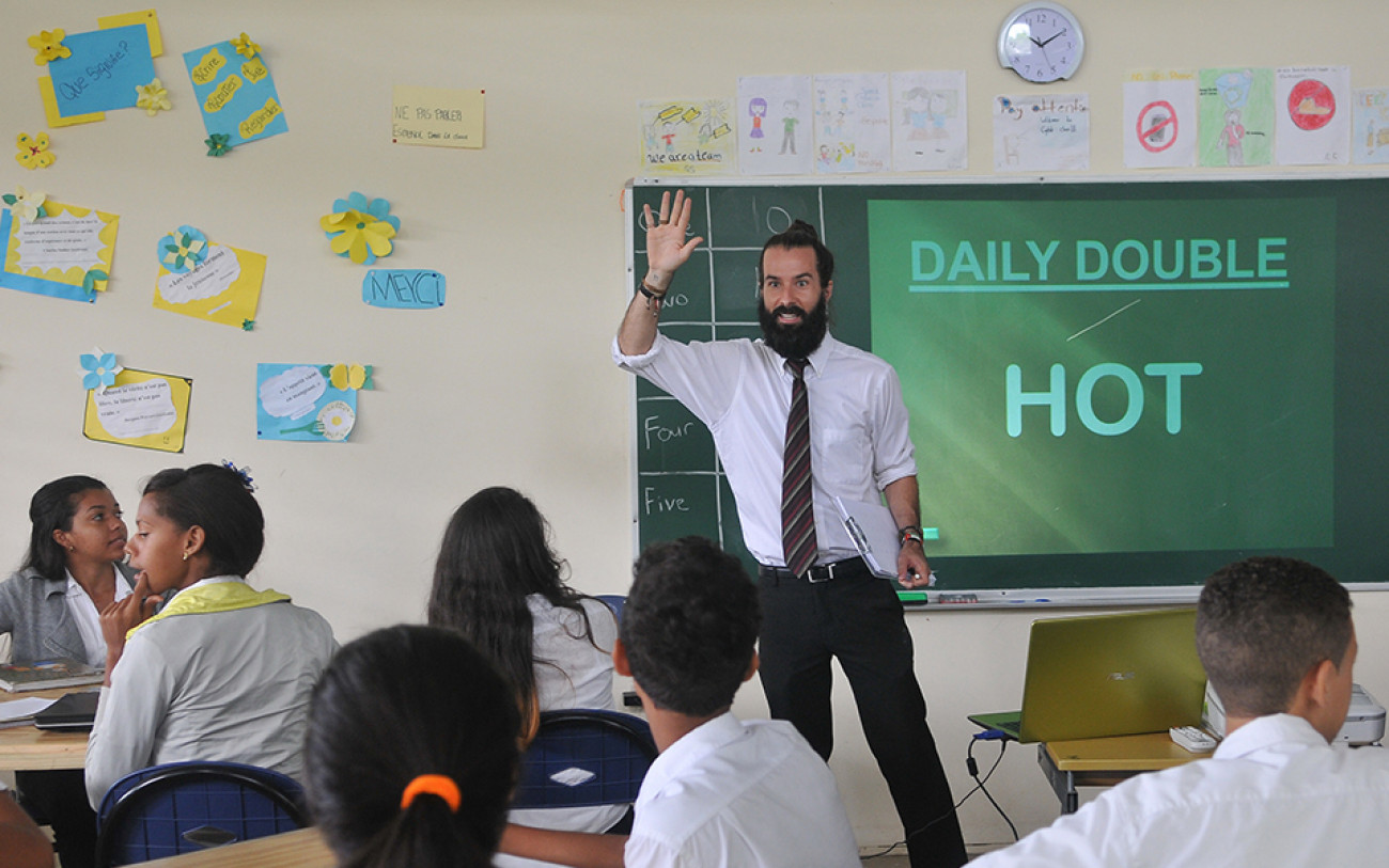 Estudiantes del Liceo Científico Doctor Miguel Canela Lázaro recibiendo docencia de la materia de Inglés.