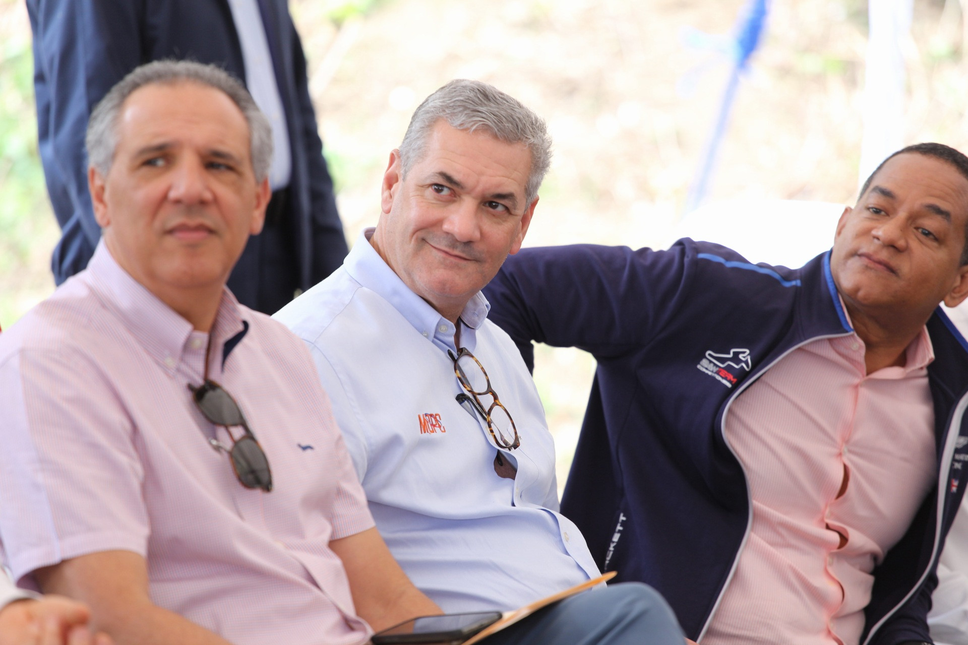 Los ministros José Ramón Peralta, Administrativo de la Presidencia; Gonzalo Castillo, de Obras Públicas y Comunicaciones; y Julio César Valentín, senador de Santiago, participaron en la Visita Sorpresa 203, donde el jefe de Estado sostuvo un diálogo directo con productores y productoras de las comunidades Pedro García y Sabana Iglesia, cuyas necesidades fueron atendidas.