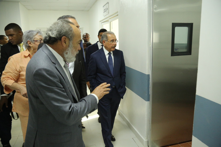 El presidente Danilo Medina, acompañado del director de la Oficina de Ingenieros Supervisores de Obras del Estado (OISOE), Francisco Pagán; la ministra de Salud, Altagracia Guzmán Marcelino; funcionarios y autoridades, recorrió las instalaciones del moderno hospital.