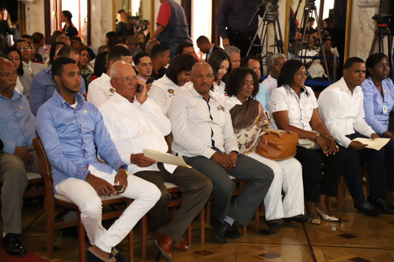 Asistentes a la emotiva ceremonia, donde el presidente Danilo Medina entregó fondos del Proyecto PRORURAL-FIDA. El desembolso es de RD$196 millones beneficiando a 38 organizaciones de productores rurales.