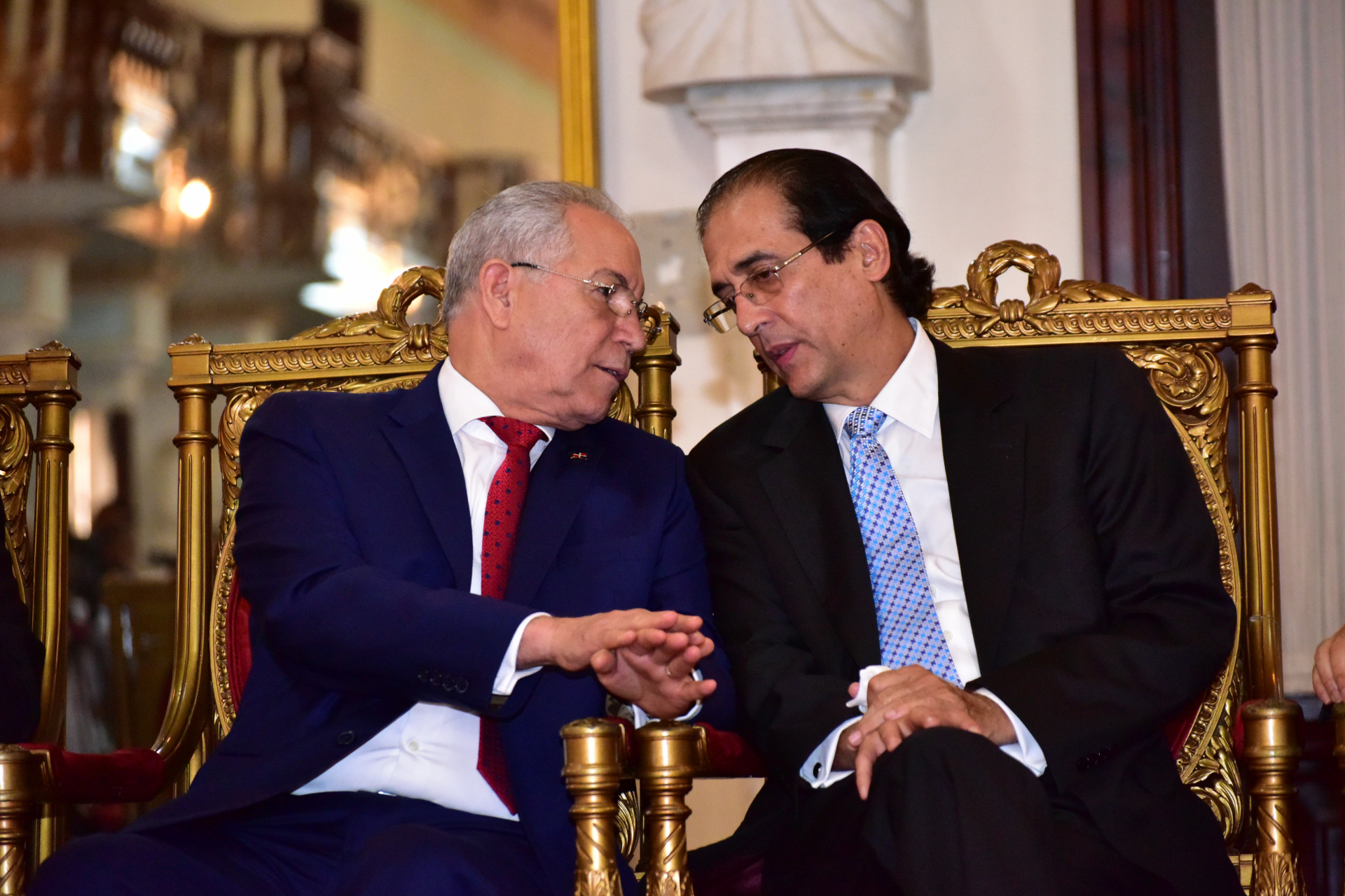 Gustavo Montalvo, ministro de la Presidencia, conversa con Antonio Vargas Hernández, director general de Cooperación Multilateral.