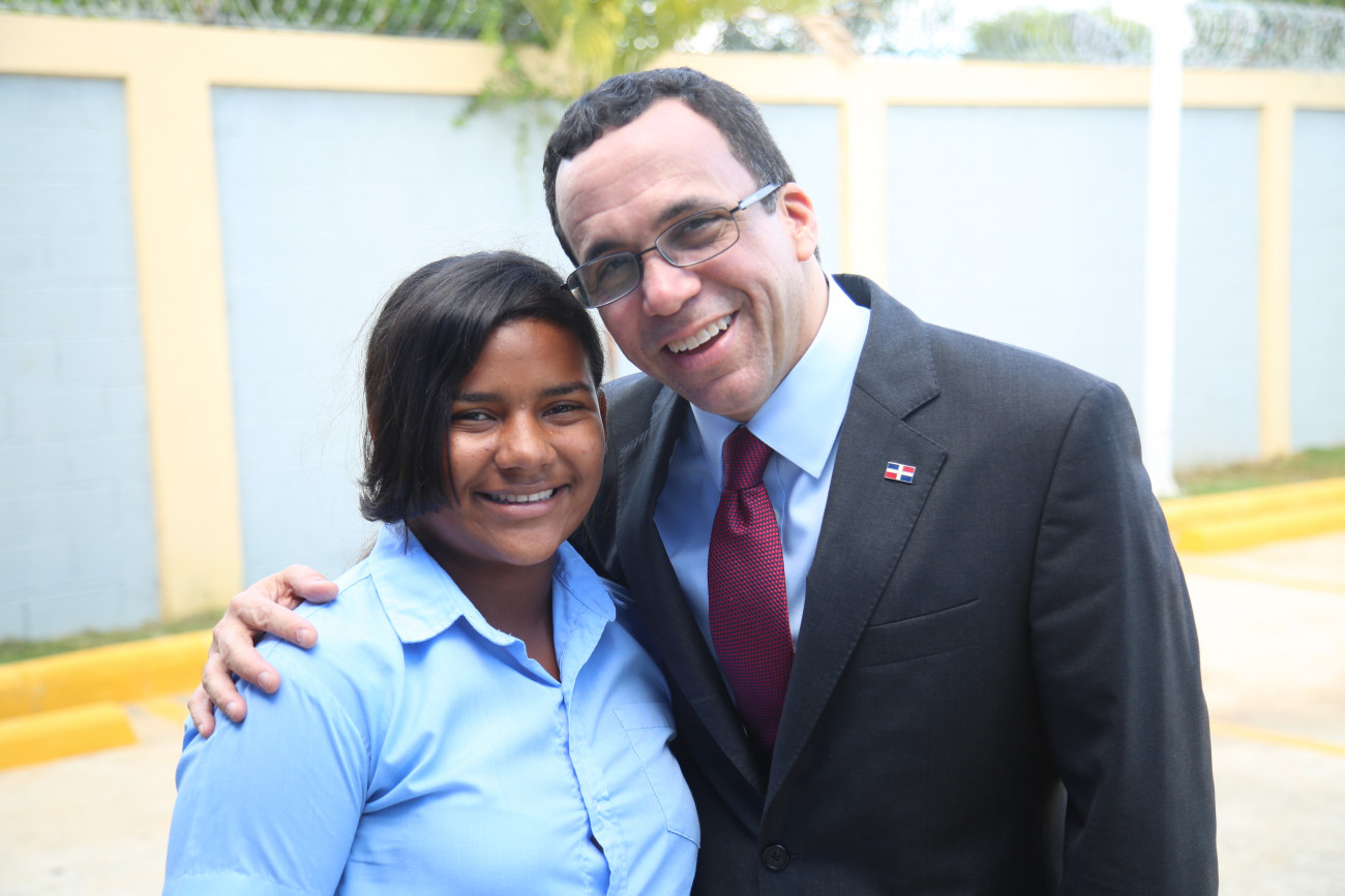 Andrés Navarro, ministro de Educación, comparte con una de las estudiantes.