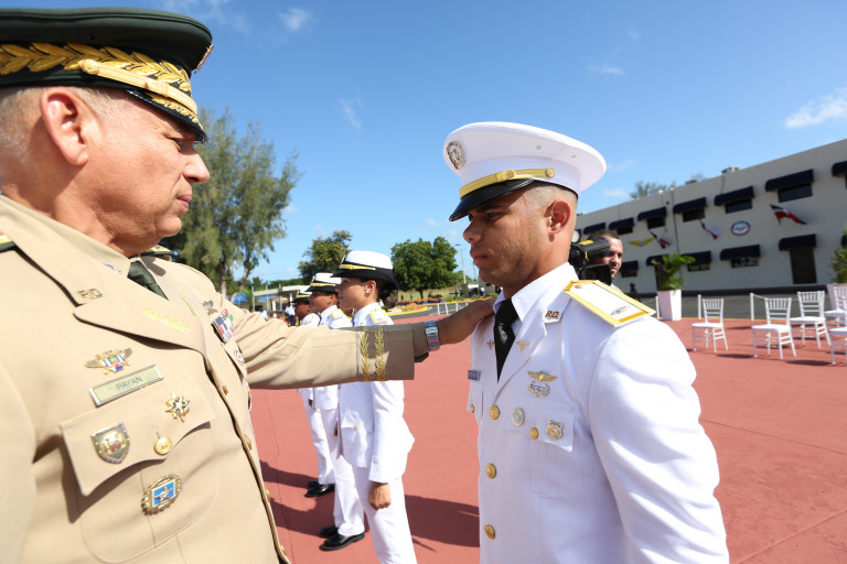 La vistosa ceremonia tuvo la entrega de diplomas por representación como licenciados en Ciencias Militares y Aeronáuticas, a cargo del mayor general Luis Ramón Payán Areché, rector del Instituto Superior para la Defensa.