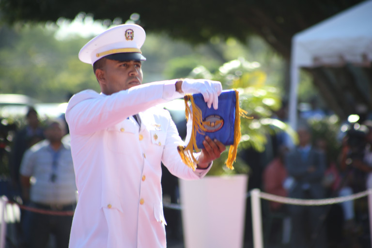 En presencia del Primer Mandatario, y de los altos mandos militares del país, se dio lectura a la orden del día y se realizó el traspaso del orden de bandera y de mando de comandante del comando de cadetes para dar paso de inmediato a la entrada de los graduandos de la nueva promoción, y a la invocación religiosa a cargo del capitán capellán Luis Obispo Díaz Méndez.