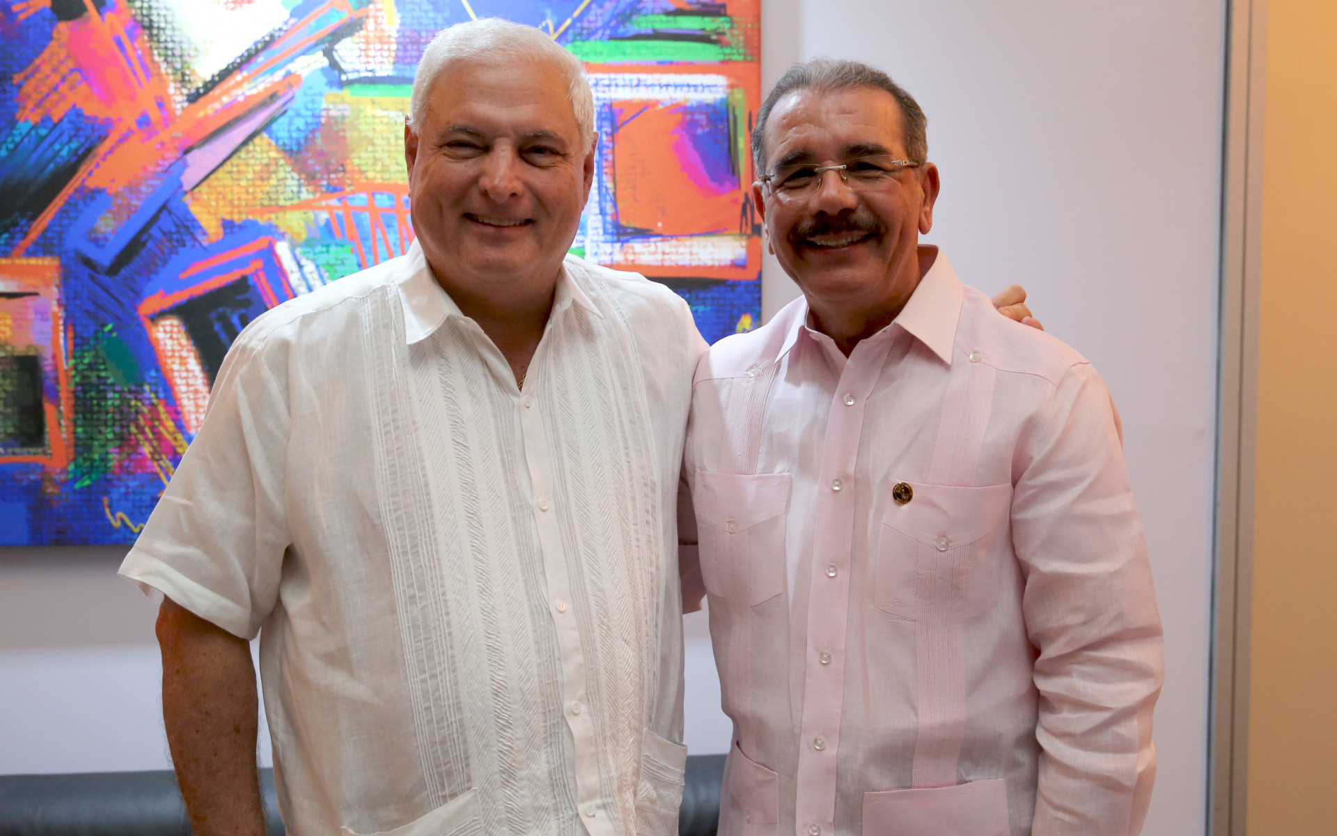 Los presidentes de Panamá, Ricardo Martinelli; y República Dominicana, Danilo Medina, en el marco de la cuadragésimo segunda Cumbre de Jefes de Estado y de Gobierno del SICA.