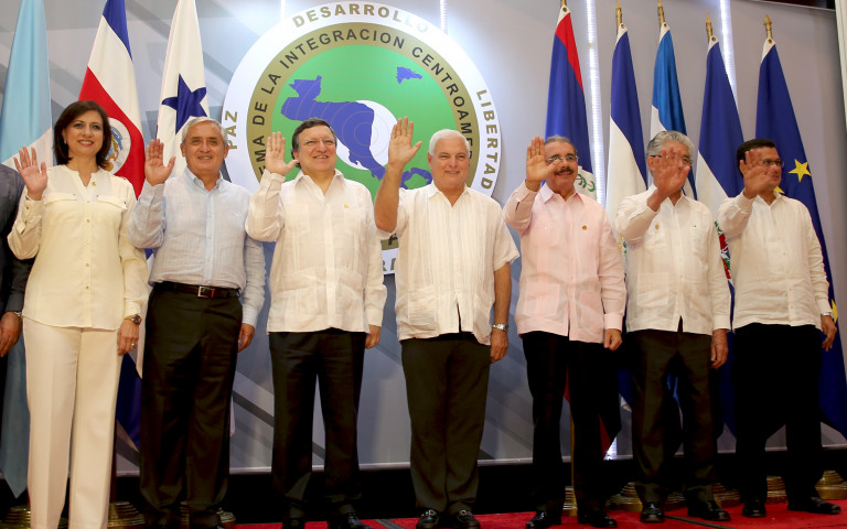 Foto oficial de los jefes de Estado y de Gobierno de la cuadragésimo segunda Cumbre de Jefes de Estado y de Gobierno del SICA-UE.