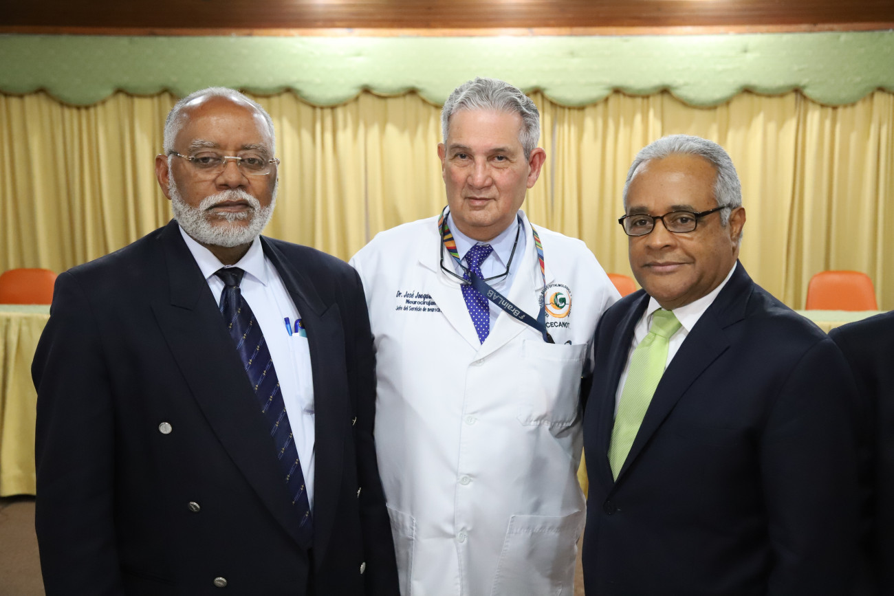 El presidente del CMD, Wilson Roa, Dr. José Joaquín Puello, y el Dr. Rafael Sánchez Cárdenas, durante el encuentro.
