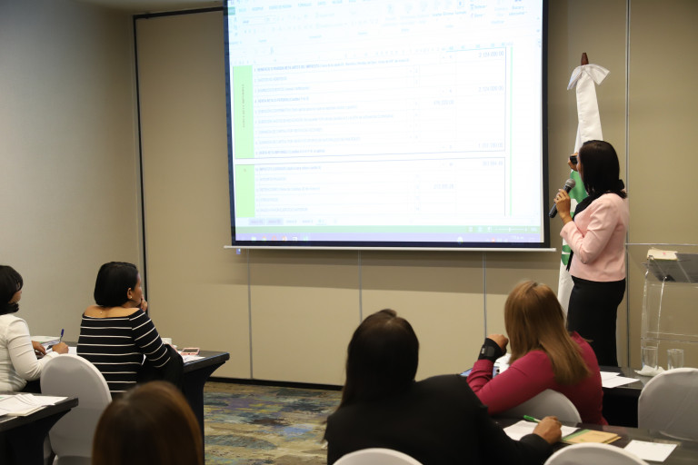 Participantes del curso-taller “Sistema Tributario Dominicano”, organizado por la Dirección General de Impuestos Internos (DGII), impartido por la abogada Marcía Romero y dirigido a comunicadores.