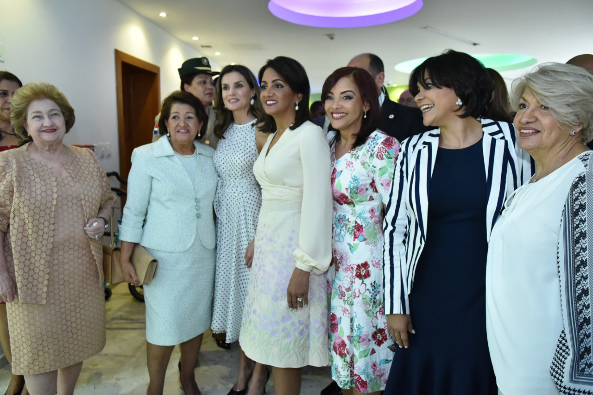 La reina Letizia de España junto a doña Cándida Montilla de Medina y otras distinguidas damas presentes durante la visita al Centro de Atención Integral para la Discapacidad (CAID), en Santo Domingo.