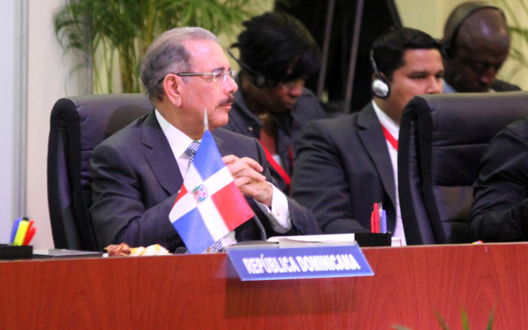 Presidente de la República Dominicana, Danilo Medina, escucha las palabras de apertura de la II Cumbre Extraordinaria ALBA TC-Petrocaribe, pronunciadas por el presidente de la República de Bolivariana de Venezuela, Nicolás Maduro.