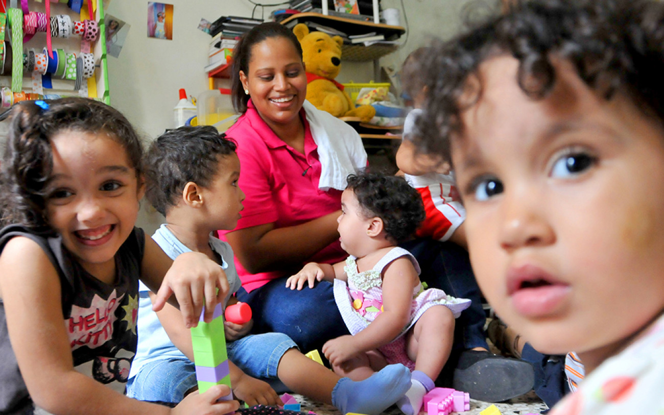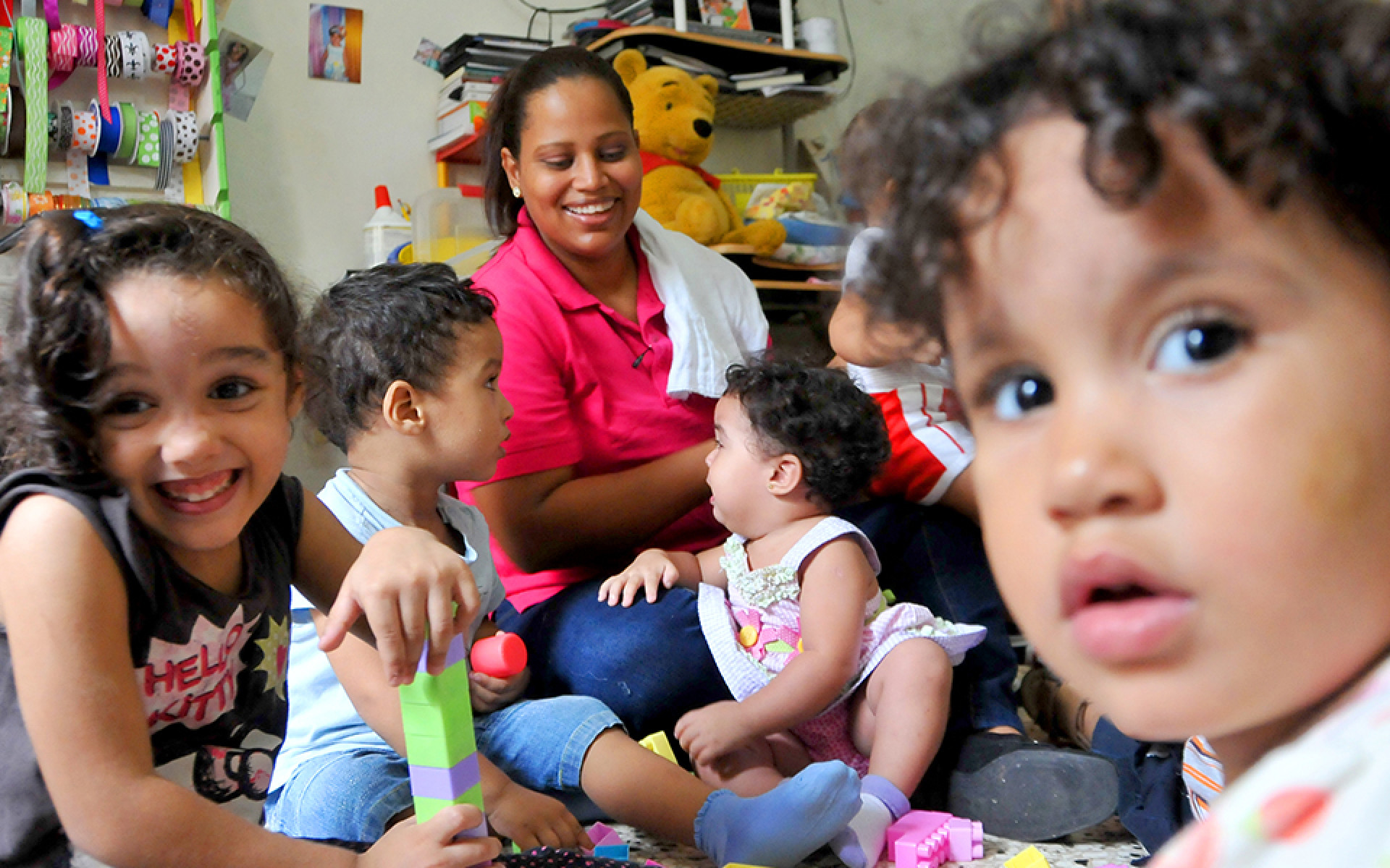 María acompañada de su niña e infantes de "My Little, Day Care for Babys", nombre de su estancia infantil, la cual combina con su negocio de accesorios.