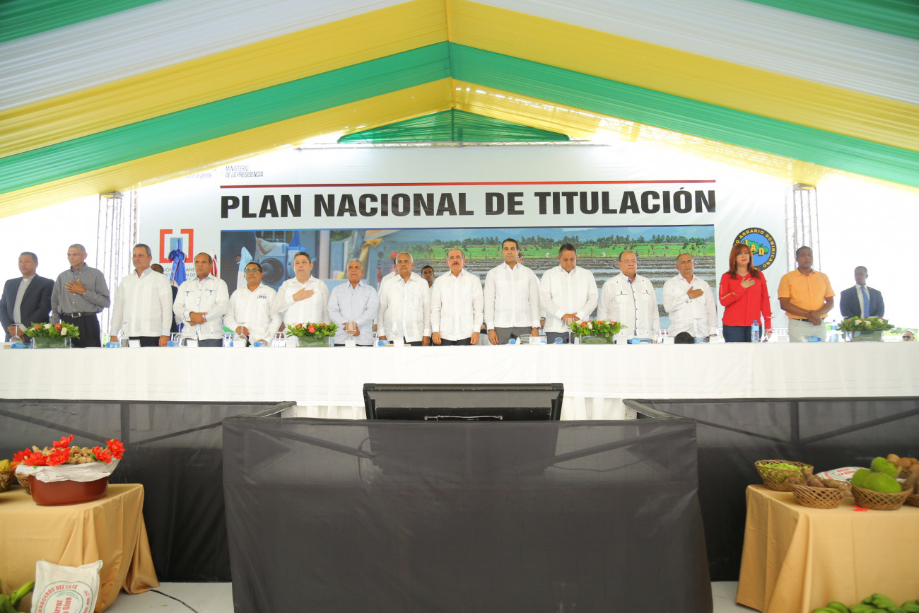 Acto encabezado por el presidente Danilo Medina para la entrega de certificados de títulos definitivos de parcelas y solares a 410 familias de la comunidad de Pedro Sánchez, en El Seibo.