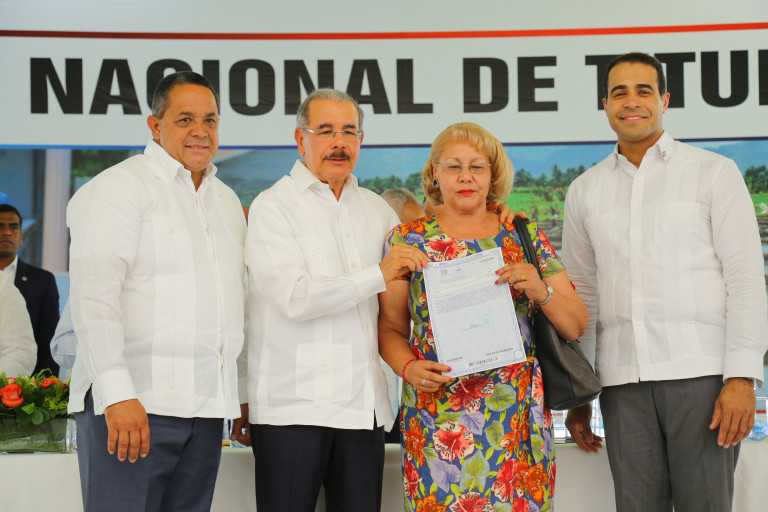 Acto encabezado por el presidente Danilo Medina para la entrega de certificados de títulos definitivos de parcelas y solares a 410 familias de la comunidad de Pedro Sánchez, en El Seibo.